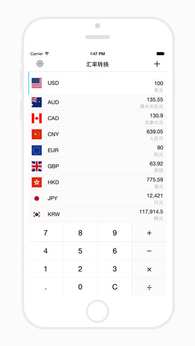 3。简单操作,快速且方便地添加,删除和切换货币;