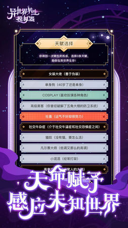 在异世界转生模拟器最新版不限加点中,玩家将开始培养不朽的非凡和奇怪的生活,异世界转生模拟器最新版不限加点具有意想不到的创意情节。玩家可以根据自己的喜好来管理角色的生活,并体验神奇而有趣的文字情节。玩家可以通过重复选择导致最终的完美结局,并且每个人都有自己的开放独家结局。它使您能够体验小说中主角的生活,并进入生活的培养,以感受到分离,聚会和喜悦的喜悦和悲伤。