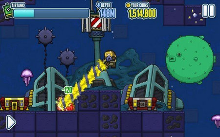 1.游戏有着极其卡通和复古的像素风格画面,场景发生在无底的海底,给人一种浓浓的神秘感。