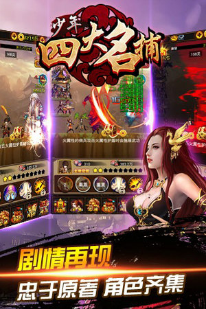 少年四大名捕挂机app改编自同名影视剧,四大名将app为玩家还原经典游戏场景。玩家甚至可以自由选择自己喜欢的游戏角色进行游玩和操作,使得这款游戏受到了很多玩家的喜爱。游戏中有海量的游戏道具等待你去探索。玩家只要完成游戏关卡即可获得丰厚奖励,让您快速完成游戏关卡。游戏玩法非常有趣。
