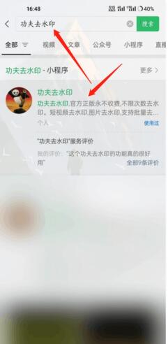 2.然后进入微信,在搜索框中输入功夫去水印。