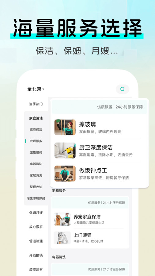 2。从日常清洁到深入的特殊清洁,到体贴的护理服务,以满足不同生活场景的用户需求;