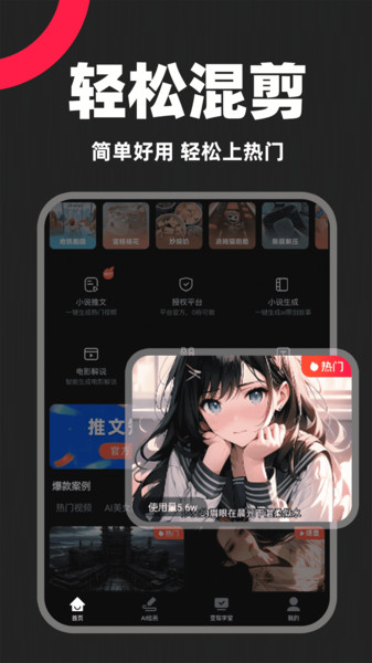 1。智能创建工具集成了视频混合编辑,电影评论的一代,AI美容舞蹈视频和AI绘画视频;