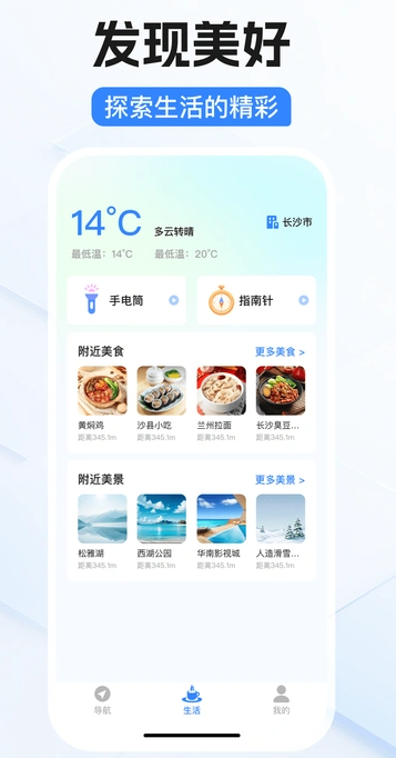 2。即使您独自在一个陌生的城市旅行或在野外探索,用户也只需要打开应用即可澄清其位置并找到前进的方向。