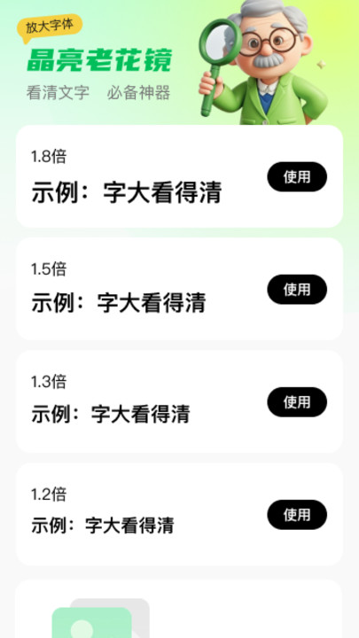 1。该应用程序的核心功能是提供字体扩大功能,以帮助老带用户更轻松地阅读手机上的文本。
