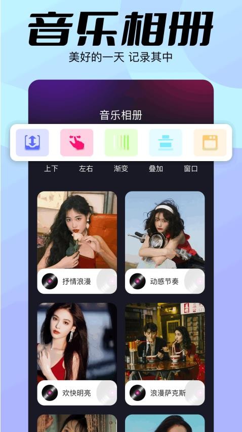 3。音乐专辑的制作功能使每个人都在制作相册时添加背景音乐来录制生活的美好时刻。