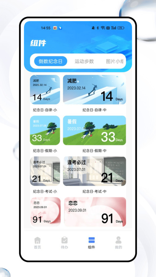 3。除了实用功能外,还提供了个性化的小部件,例如倒计时周年纪念,锻炼步骤等,以使用户的移动桌面更具个性化。