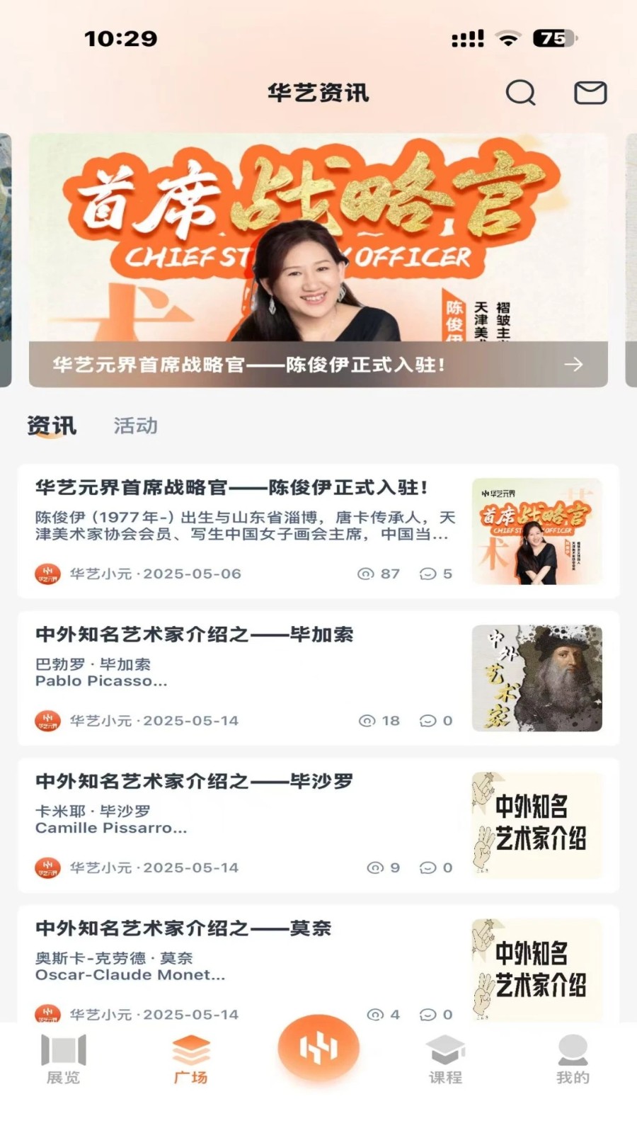 2.您可以在广场了解到各种艺术信息,还可以了解最新的艺术活动信息。