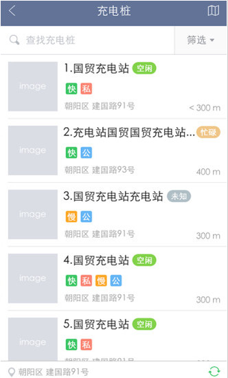 查询:通过搜索省市名称快速找到充电桩,支持界面和支付方式筛选显示。