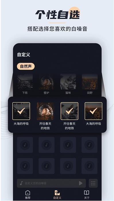 定制页面:有丰富的声音元素,随时可以随意组合,搭配出自己喜欢的。